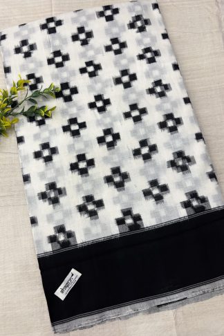 Black White 3 Motifs Telia Rumal Cotton Saree