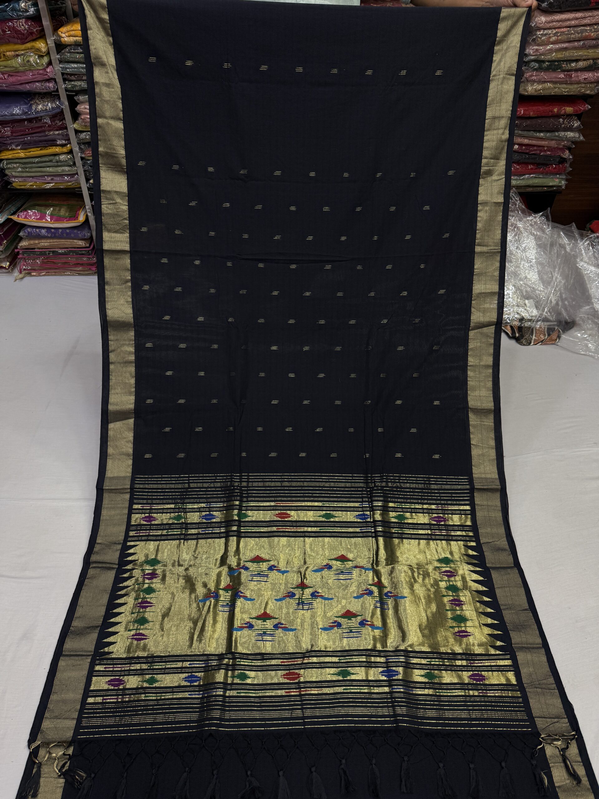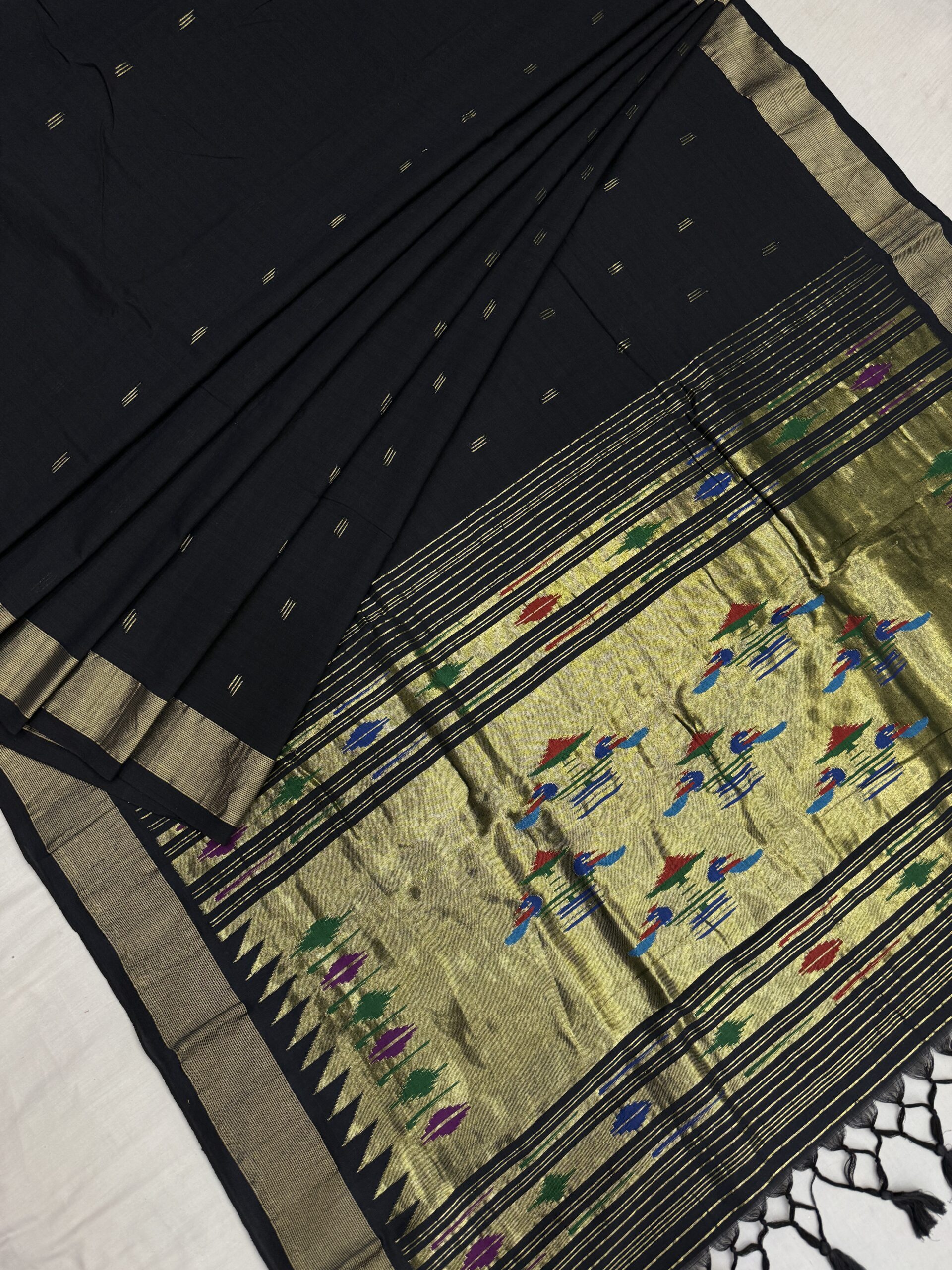 Black Gold Cotton Paithani Double Pallu Saree 9